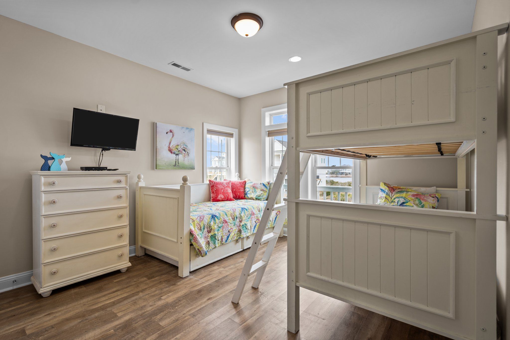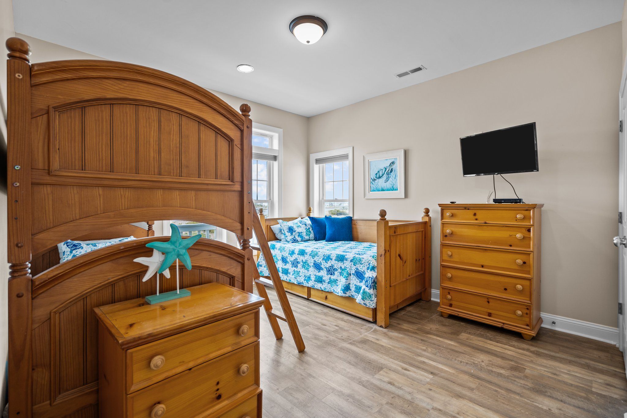 2nd Floor Twin over twin bunkbed with a twin daybed and twin tru