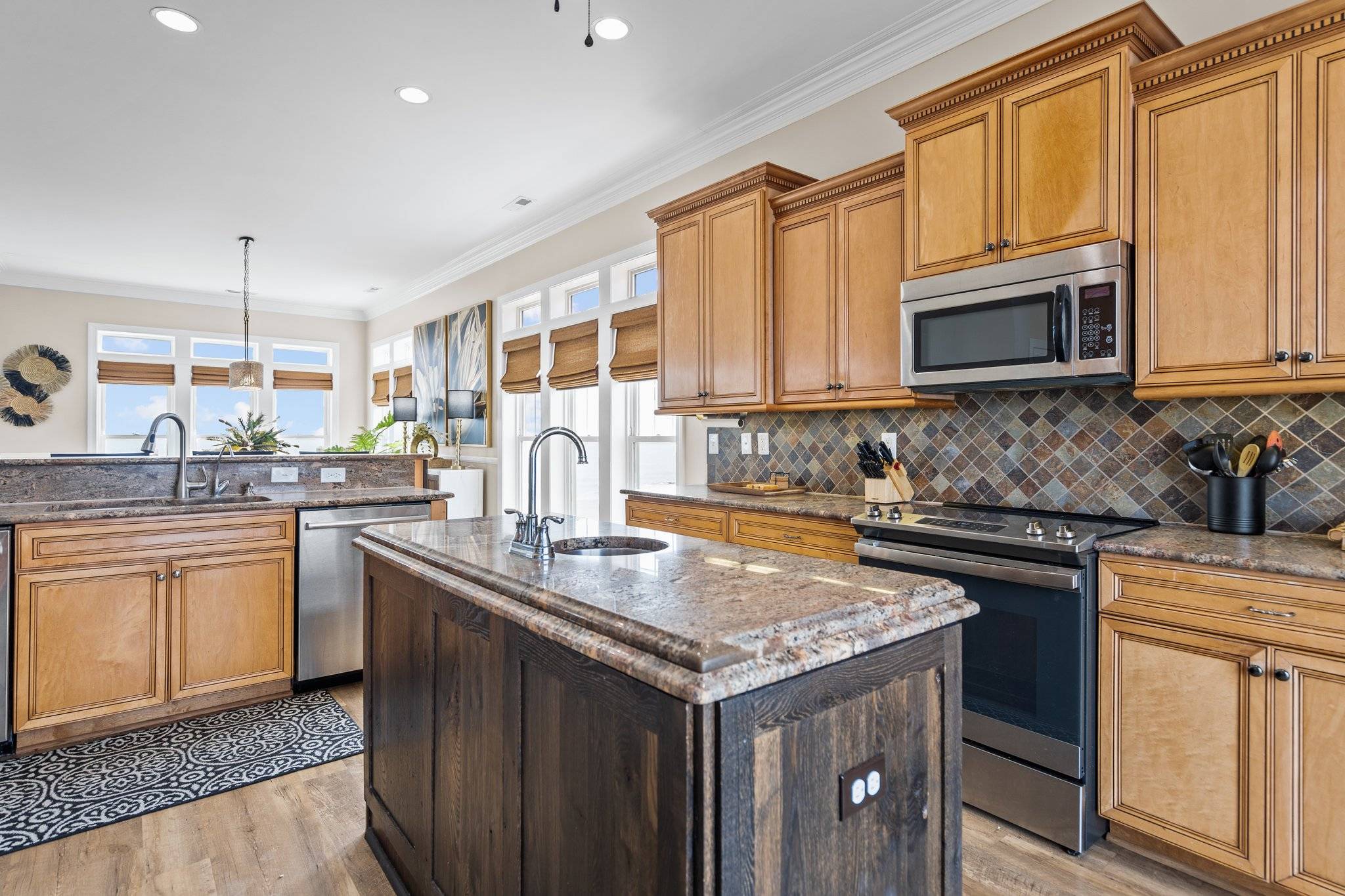 On the third level, you'll find the open-concept living, dining, and kitchen areas are perfect for large family gatherings, with modern decor, ample seating, and mesmerizing ocean views. The kitchen is a chef's dream, featuring high-end appliances and plenty of space. Outside, enjoy the oceanfront decks with comfortable seating, perfect for dining and relaxing to the sound of the waves.