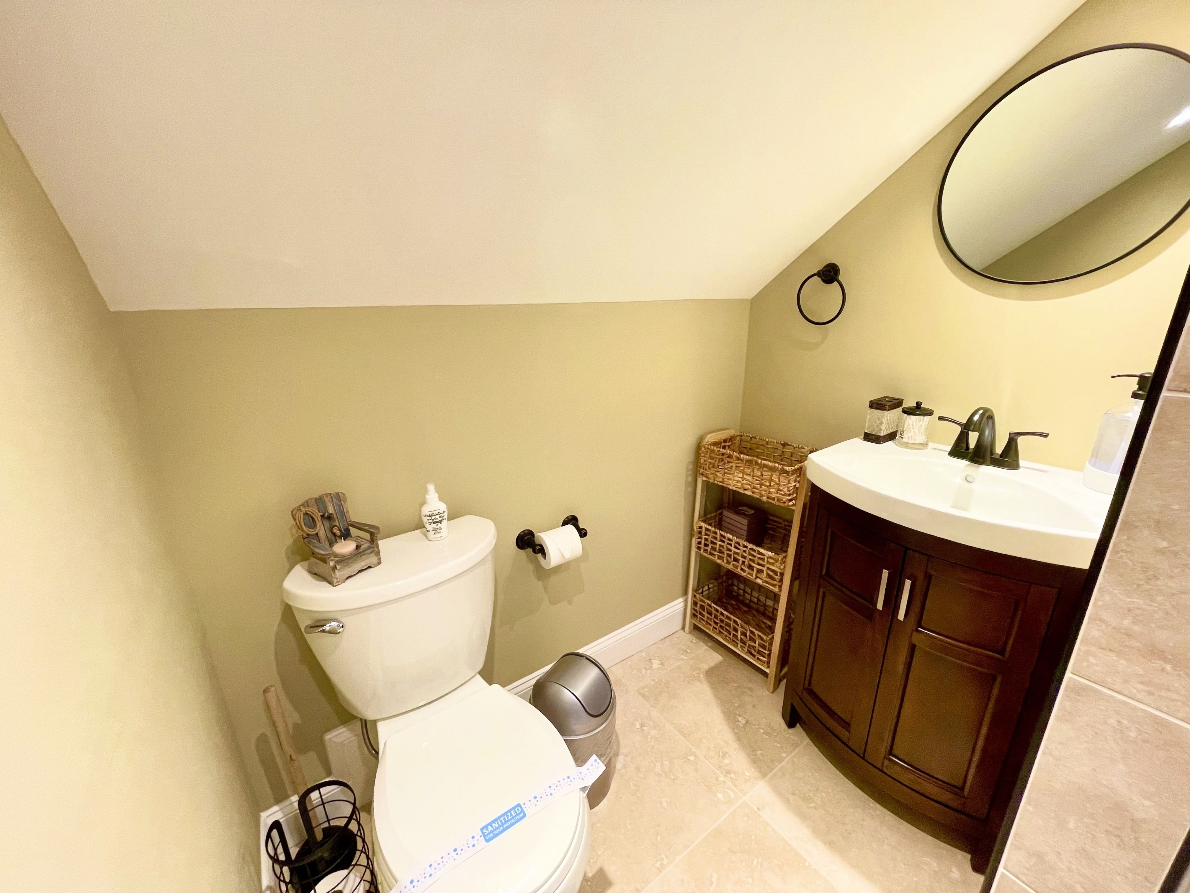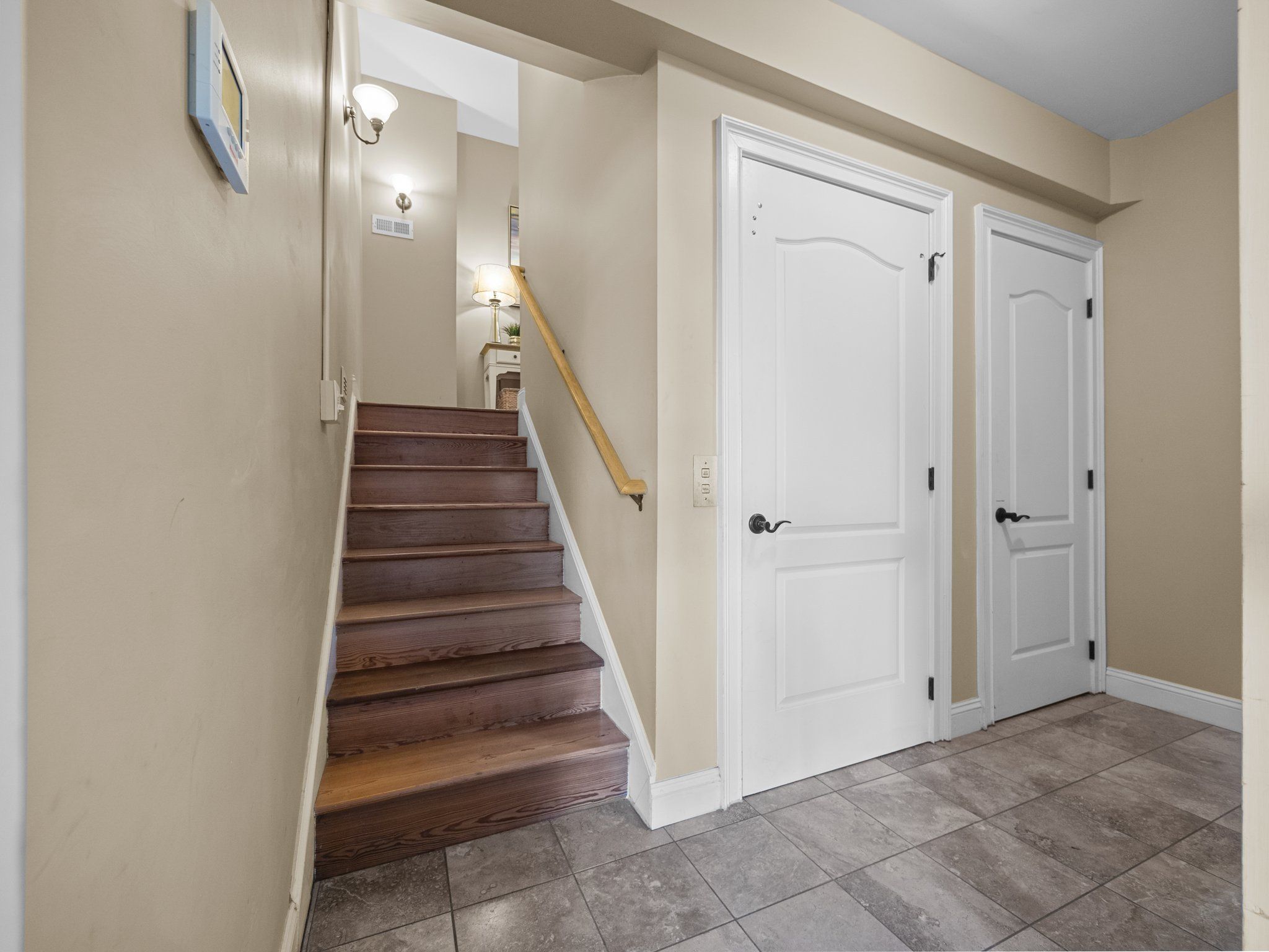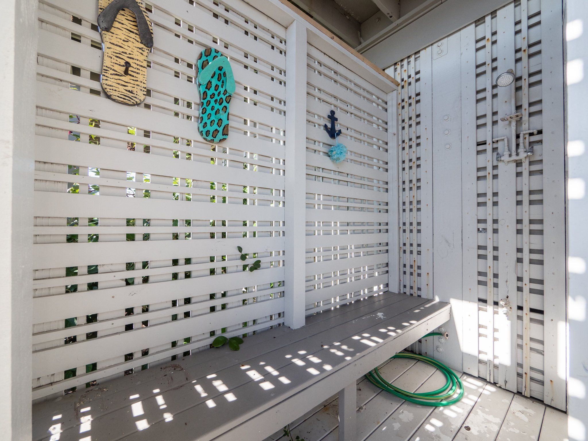 This property has a deep two-car garage. Additional parking is available in the driveway for four. A game room with a ping pong table and darts can be found in the garage. The private elevator can be accessed through the ground level and stops at all floors. A gas grill and an outdoor shower are also available on the back patio.