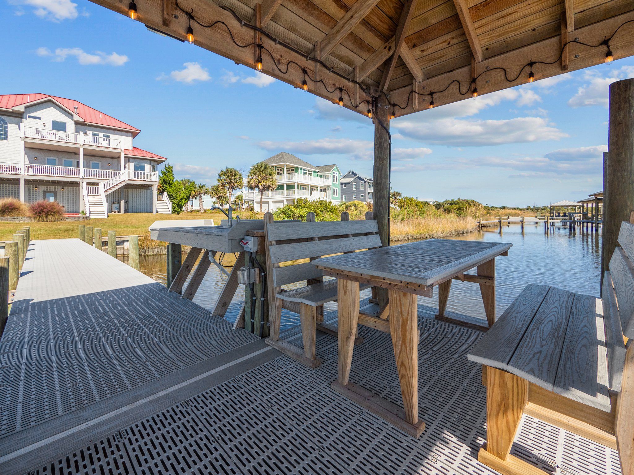 Get ready for your coastal dream to come true at Latitude Adjustment #151, a Landmark Vacation Rentals property. Situated on a half-acre waterfront lot in the quiet residential neighborhood of Cape Island, this beautiful 4 bedroom, 3.5 bathroom property boasts amazing 360-degree ocean and sound views from every room, a new private covered dock, complete with power, running water, a fish cleaning station, and a kayak launch. Bring or rent a shallow draft boat or jet ski, to use from the dock (18” draft at low tide). Neighborhood amenities include a community pool, private community beach access and parking, and a neighborhood boat launch for small boats. Latitude Adjustment #151 will surpass all expectations and delight vacationers in all respects.
