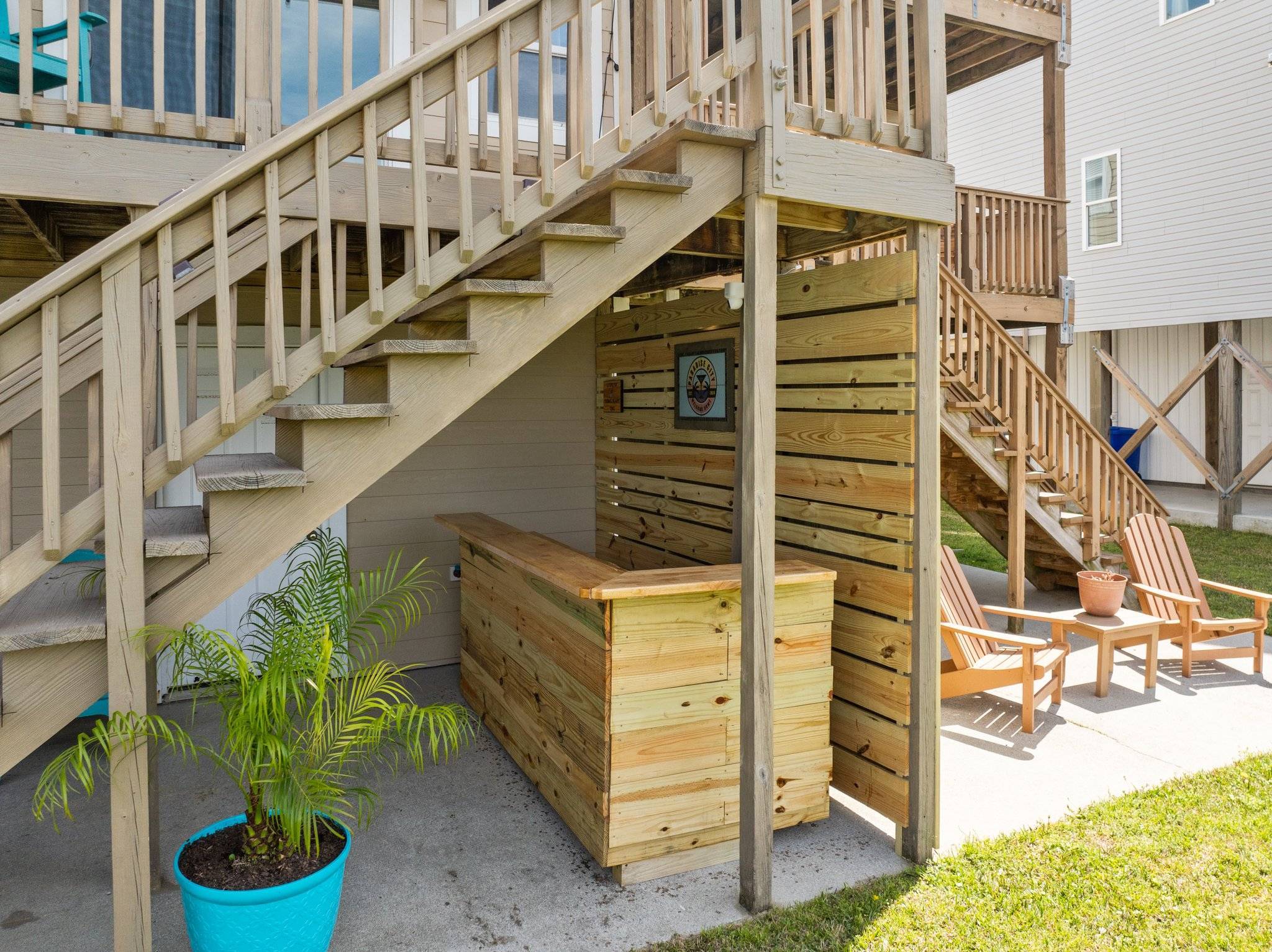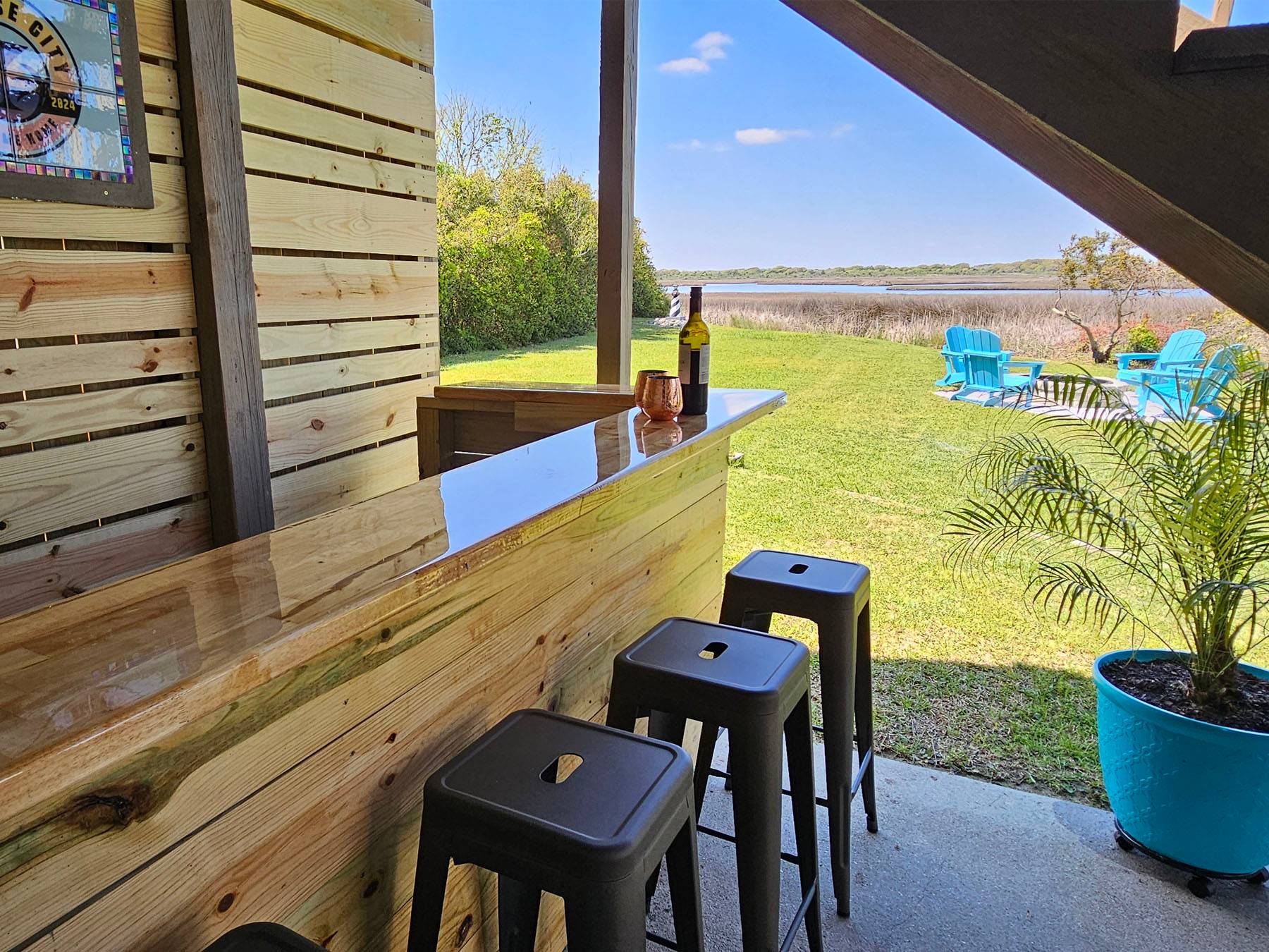 This home includes an outdoor bar, firepit, corn hole, bikes, a beach wagon, a new smoker grill and more!