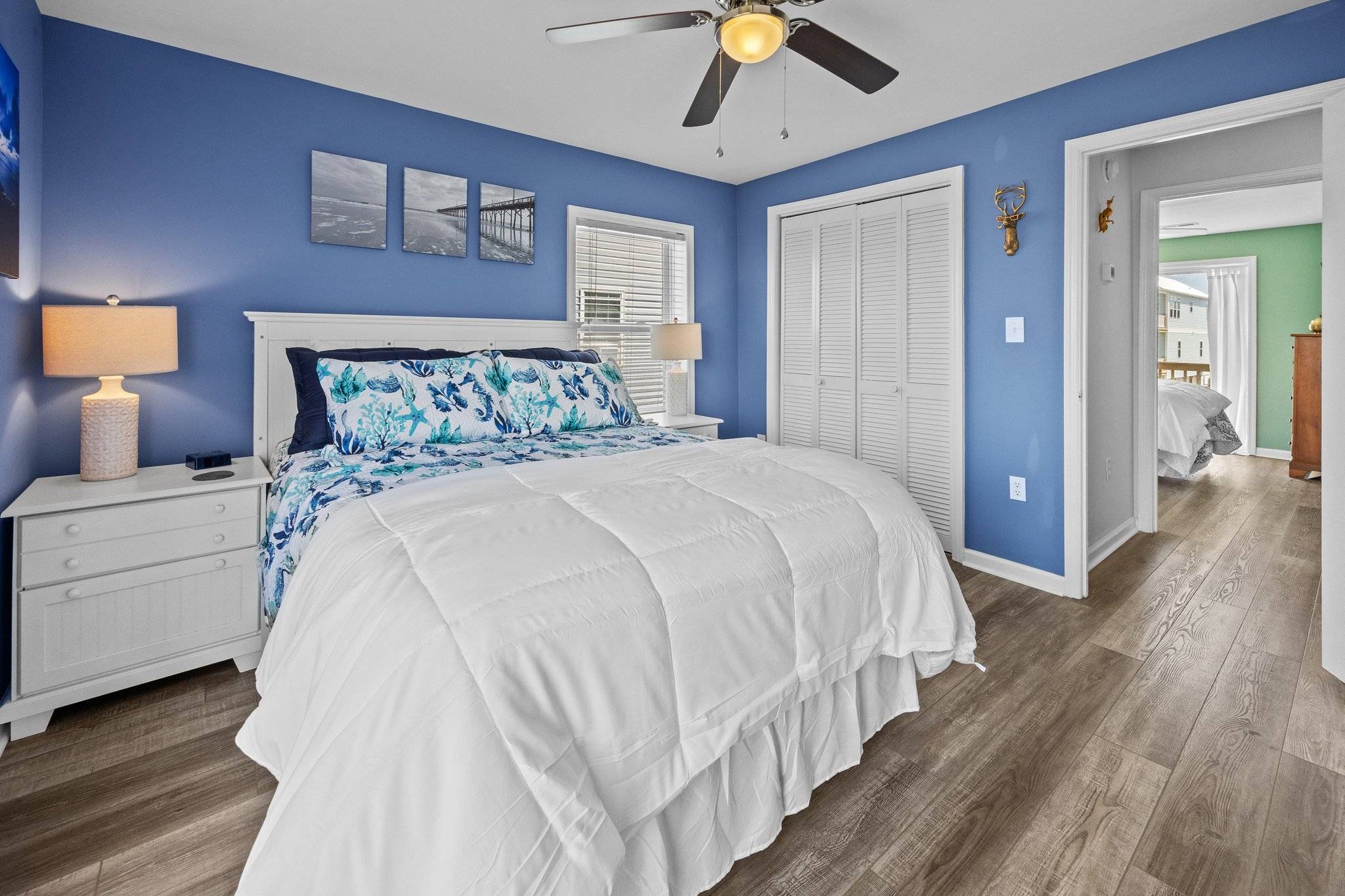 Upstairs, both bedrooms are spacious and bright, boasting large windows that showcase stunning water views. Each bedroom is outfitted with a queen-sized bed and a twin-sized roll-out bed, ensuring flexible sleeping arrangements. A second full bathroom is located on this level for added convenience. For additional sleeping needs, a queen sleeper sofa is located in the living room. Paradise City #193 can easily accommodate 8 guests.