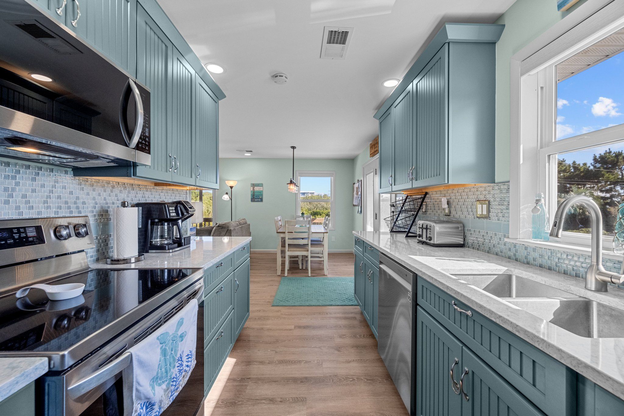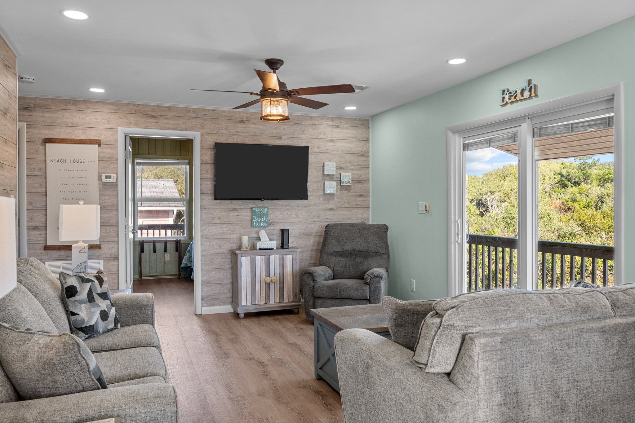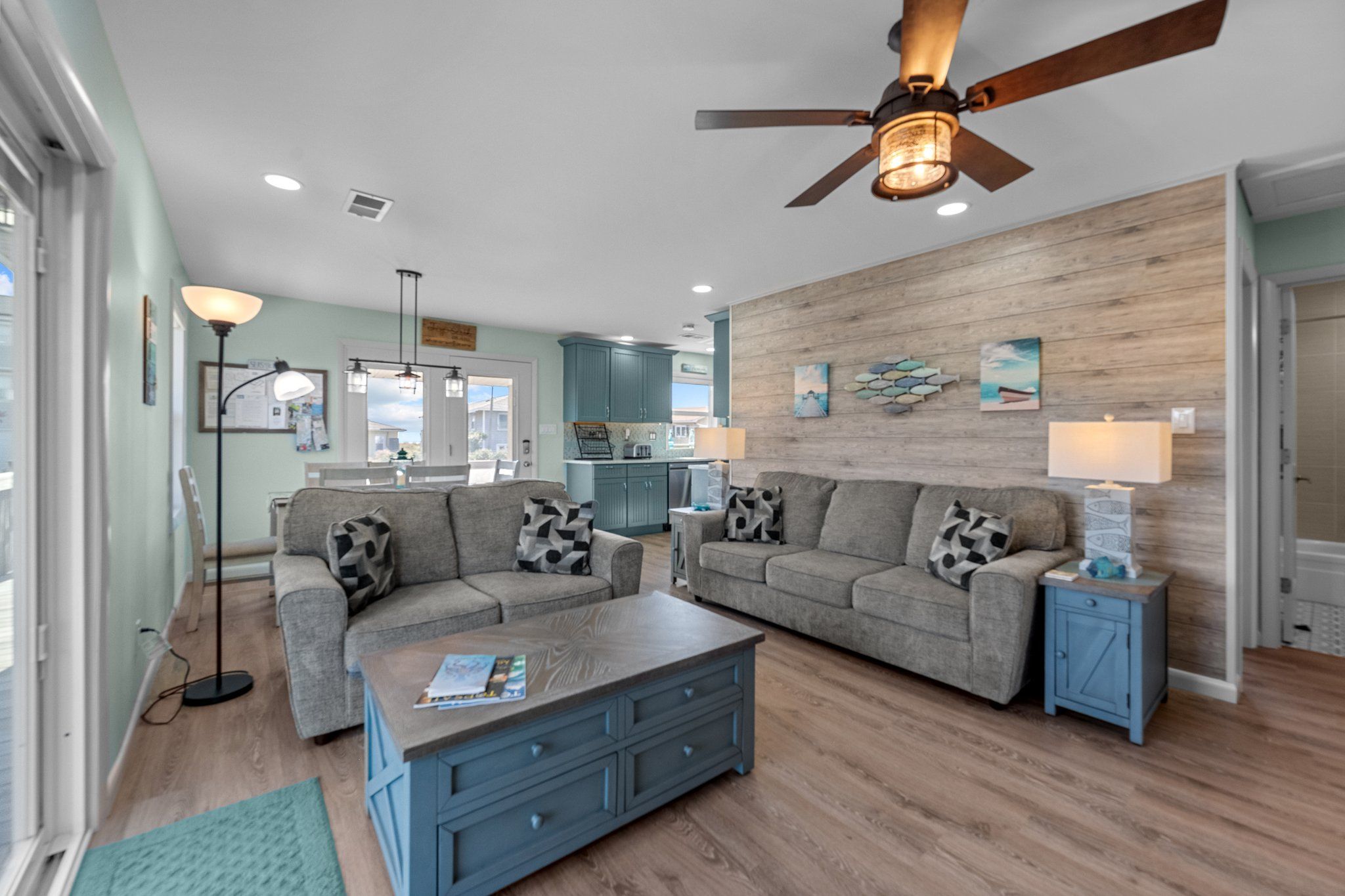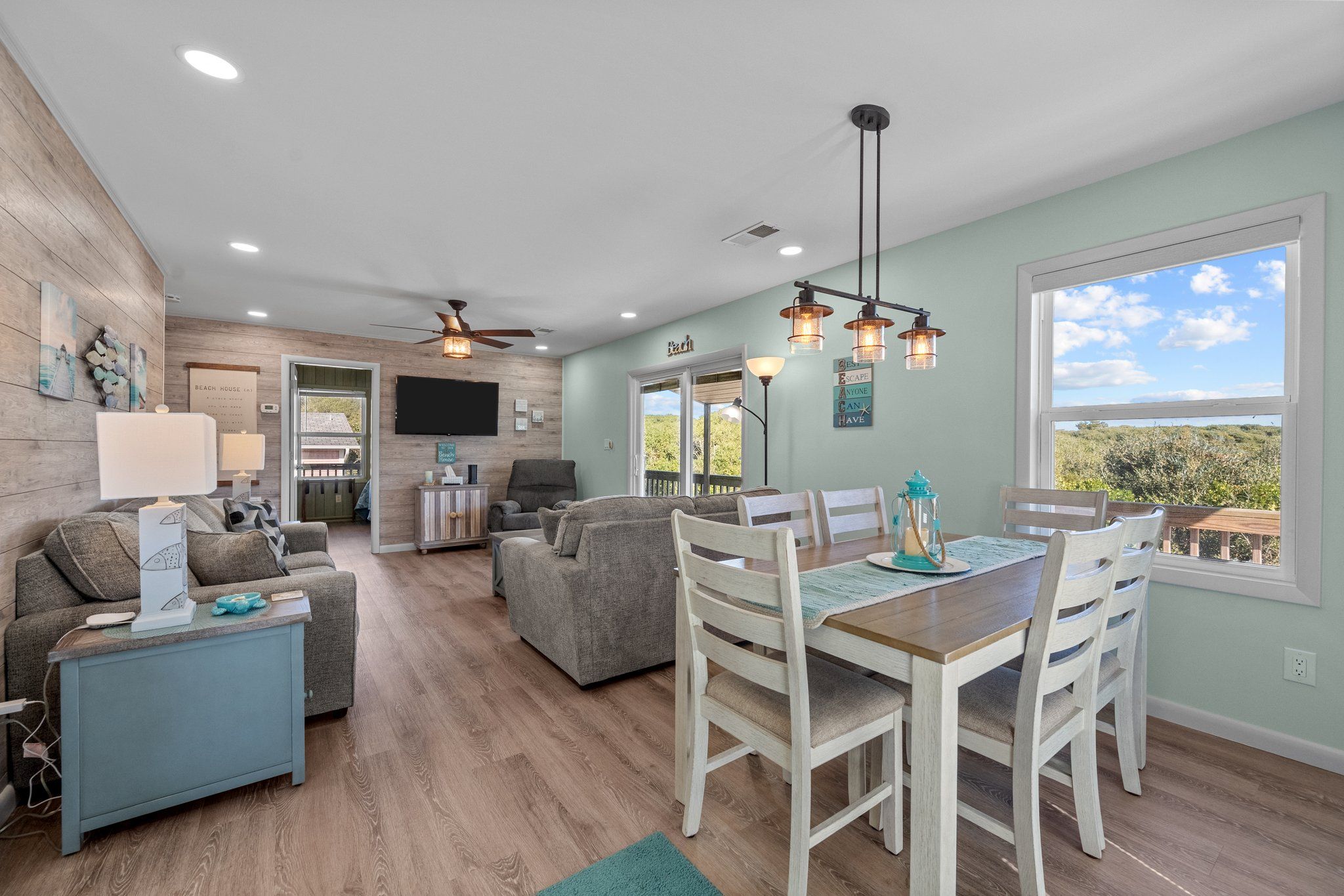 Welcome to Seas the Day #175, managed by Landmark Vacation Rentals, this charming 5-bedroom, 2-bathroom second row home is located in Topsail Beach and is perfect for those seeking an authentic coastal getaway. This recently remodeled beach cottage offers updated features while preserving its classic beach charm, providing the perfect retreat for up to 10 guests. This property is built as a duplex but rented together, giving guests the option of having two separate, private spaces with their own entrance. This is especially helpful for guests with mobility issues who cannot navigate stairs easily, as the lower unit requires no climbing to access. This home welcomes two dogs per reservation, for an additional non-refundable fee of $250 per dog.