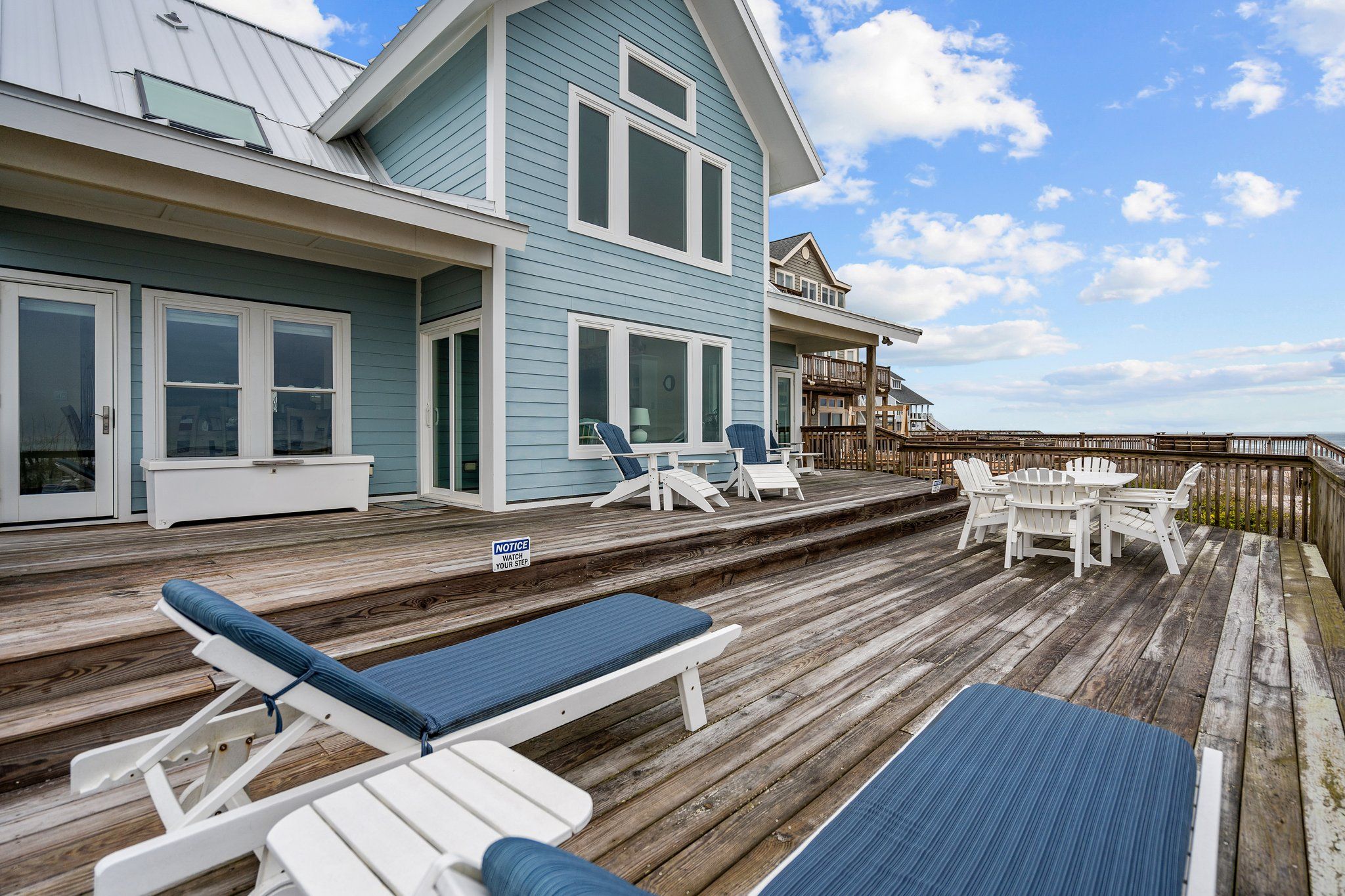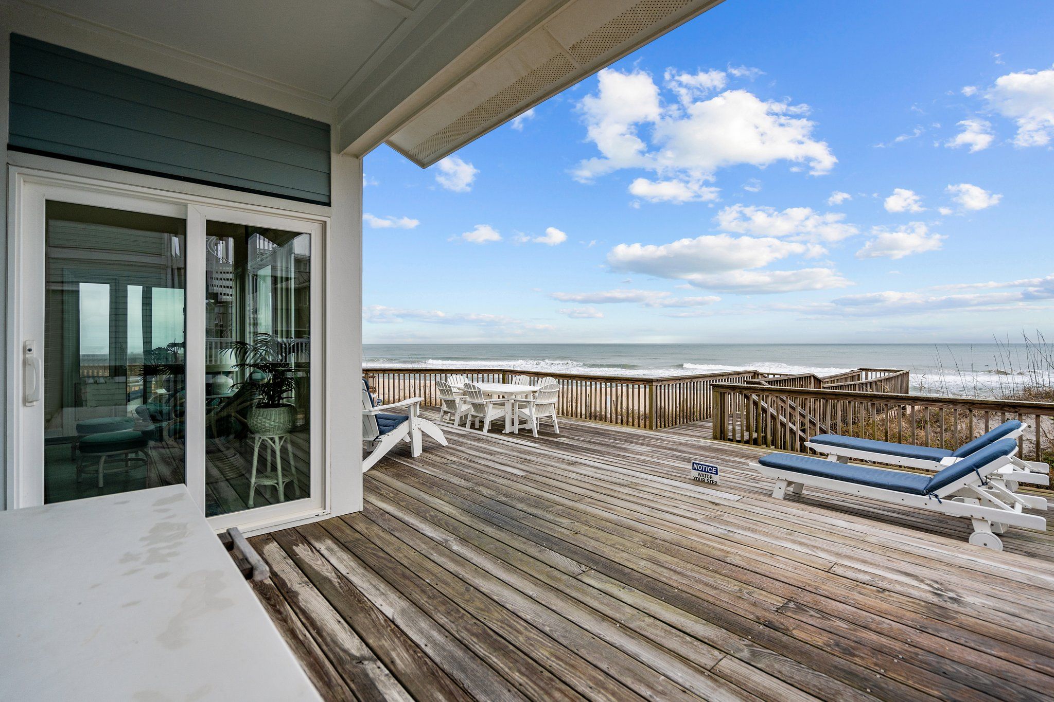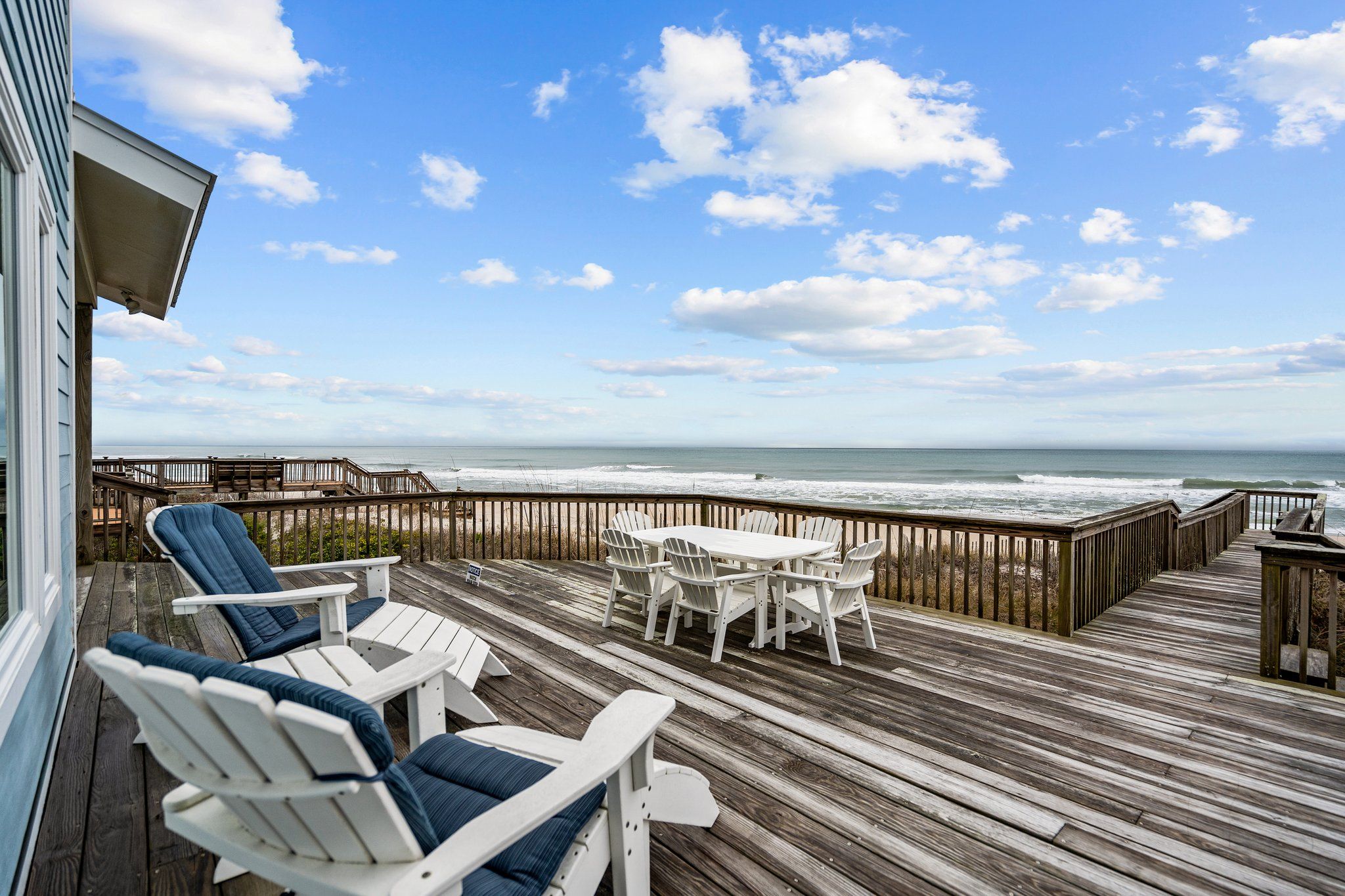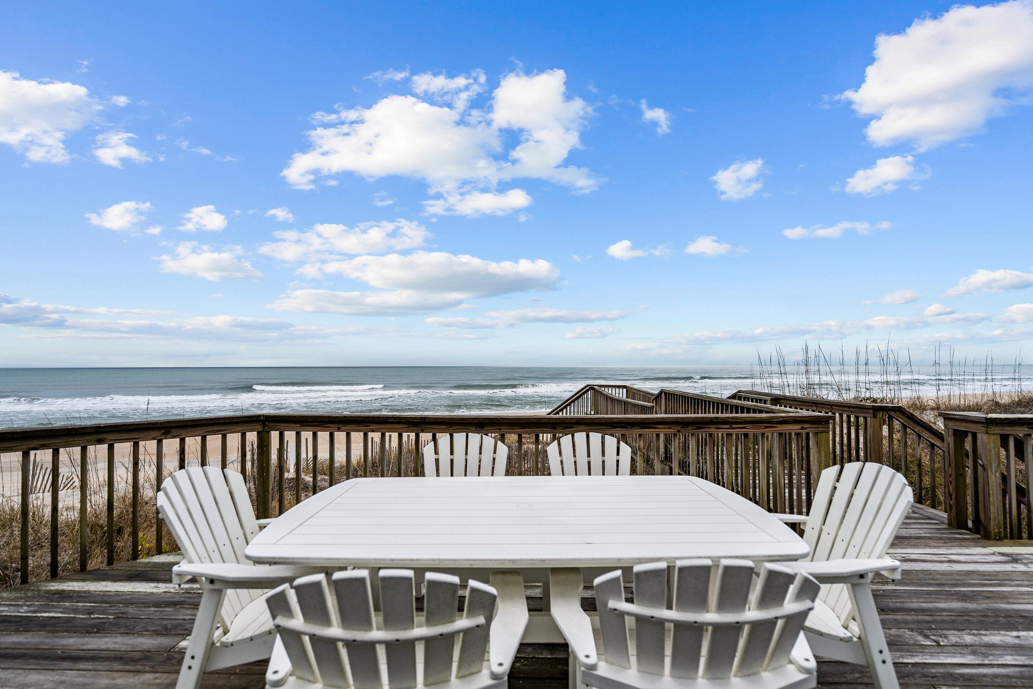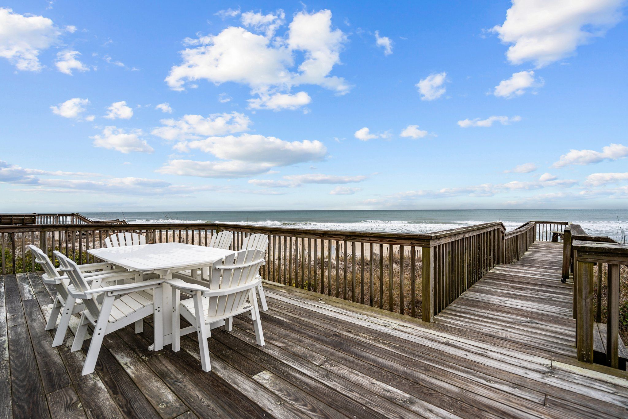 Ocean view deck seating and walkway to beach