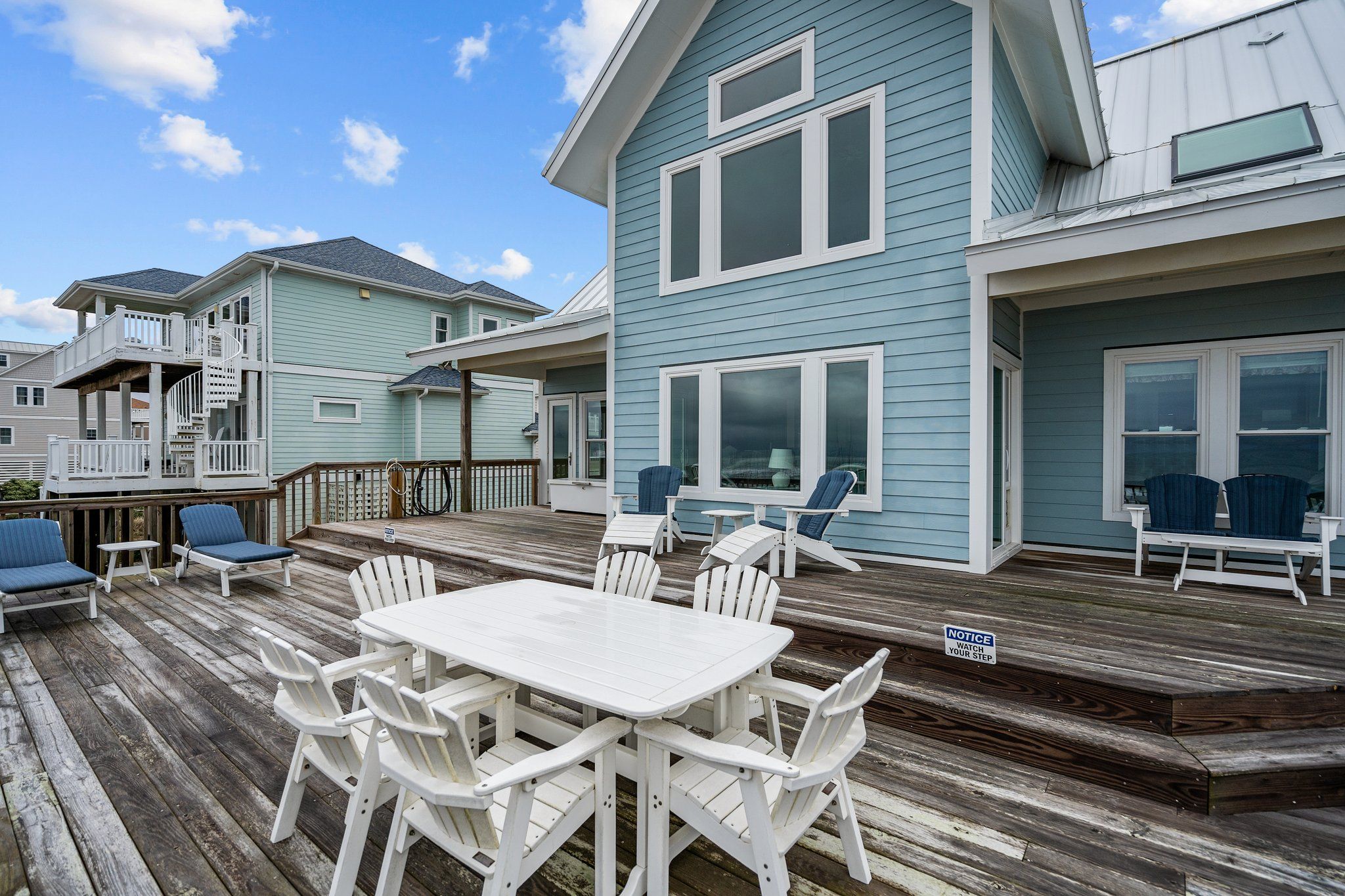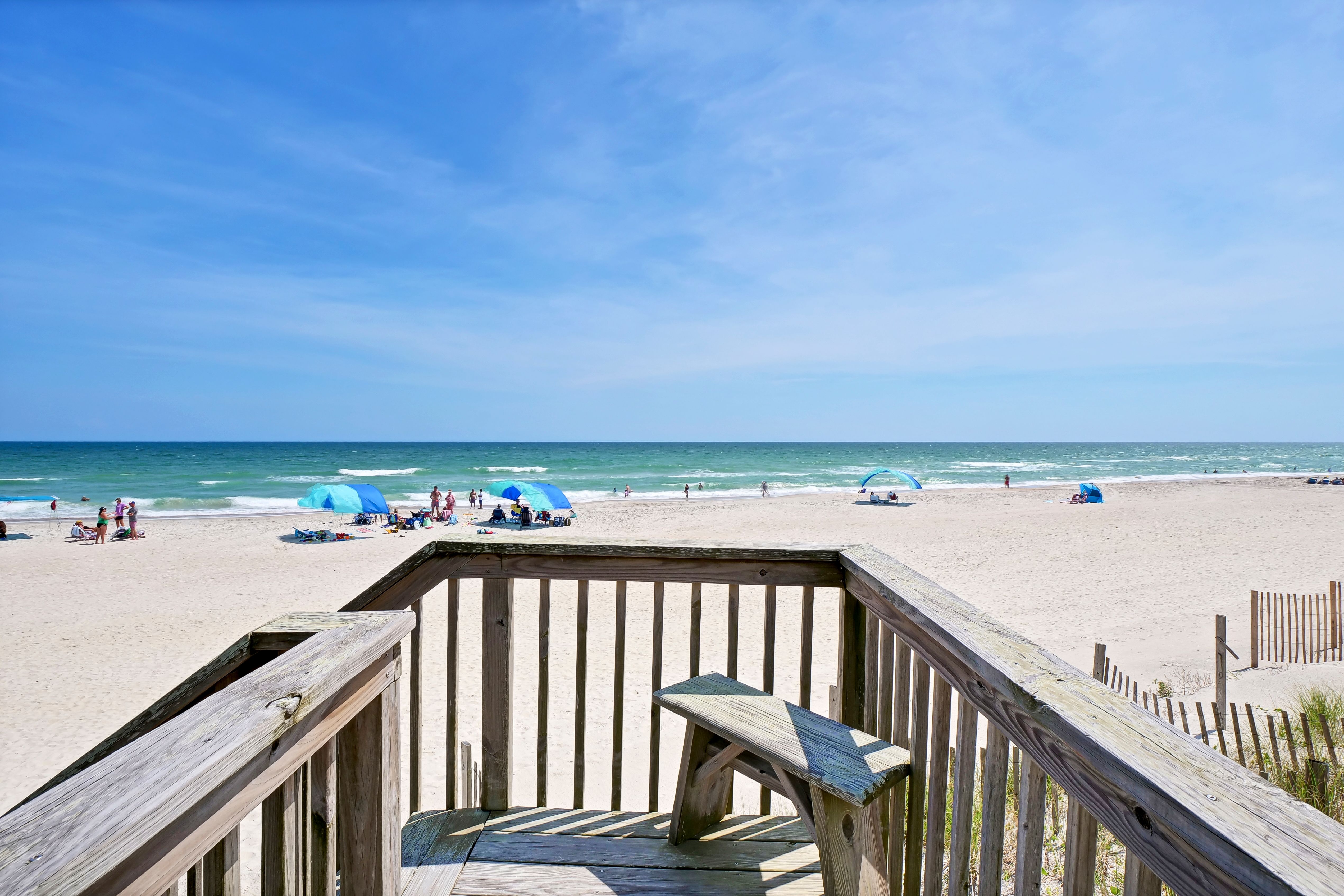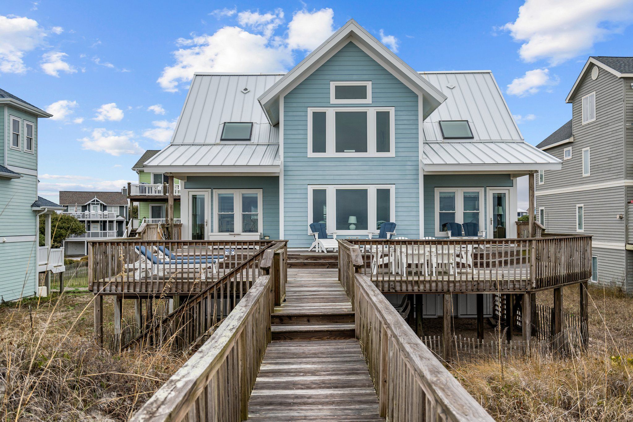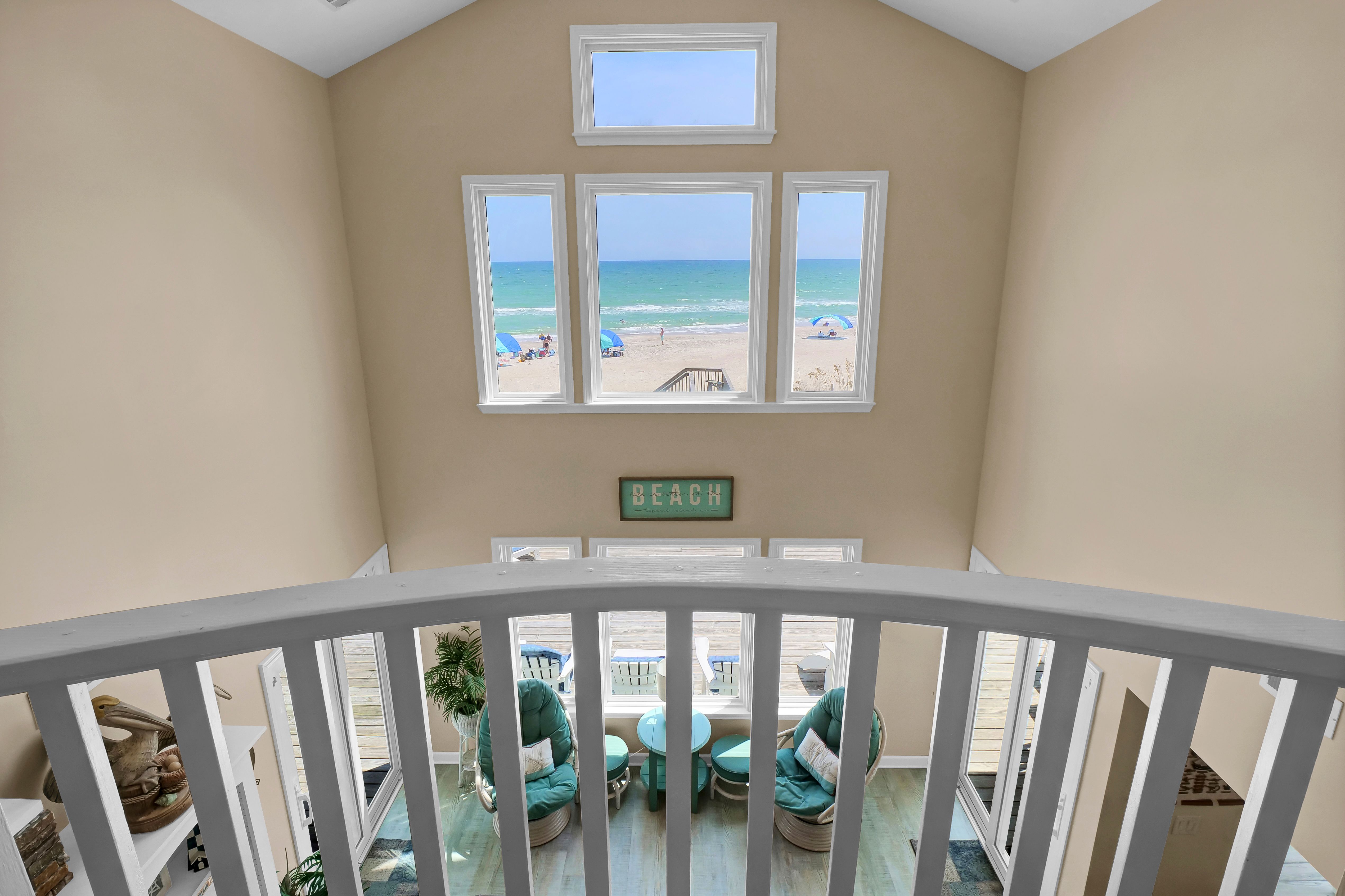 Ocean view deck seating and walkway to beach
