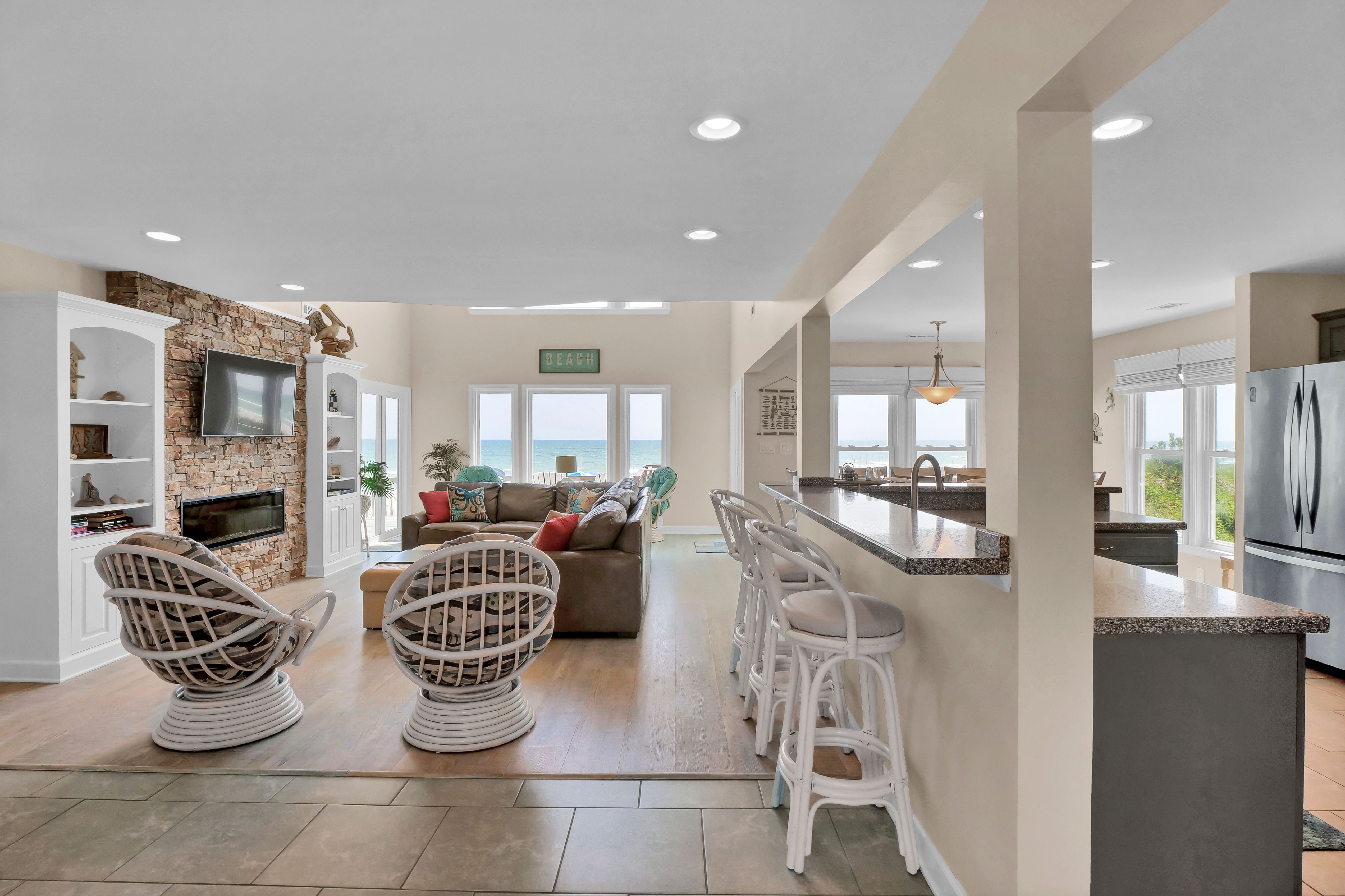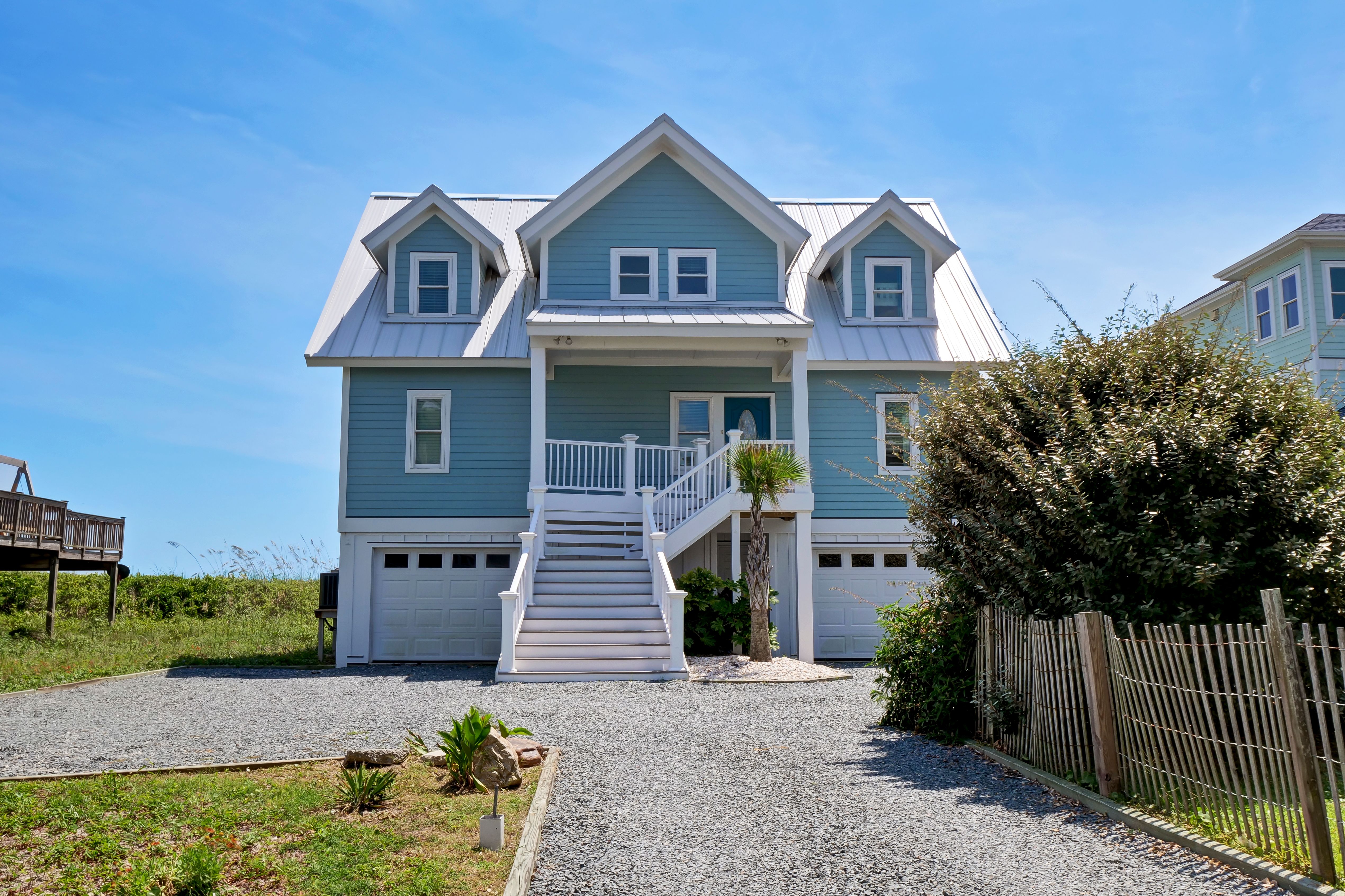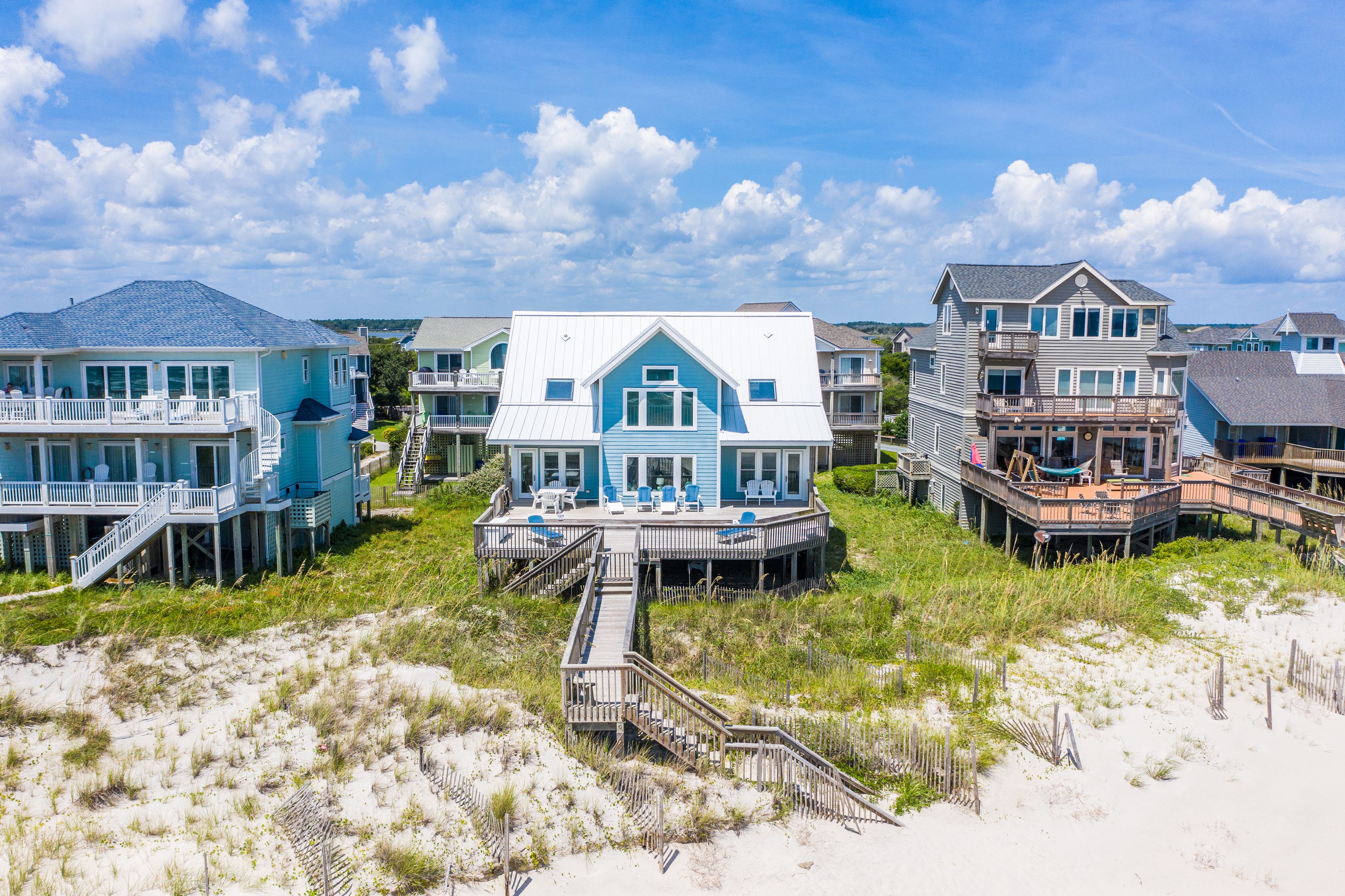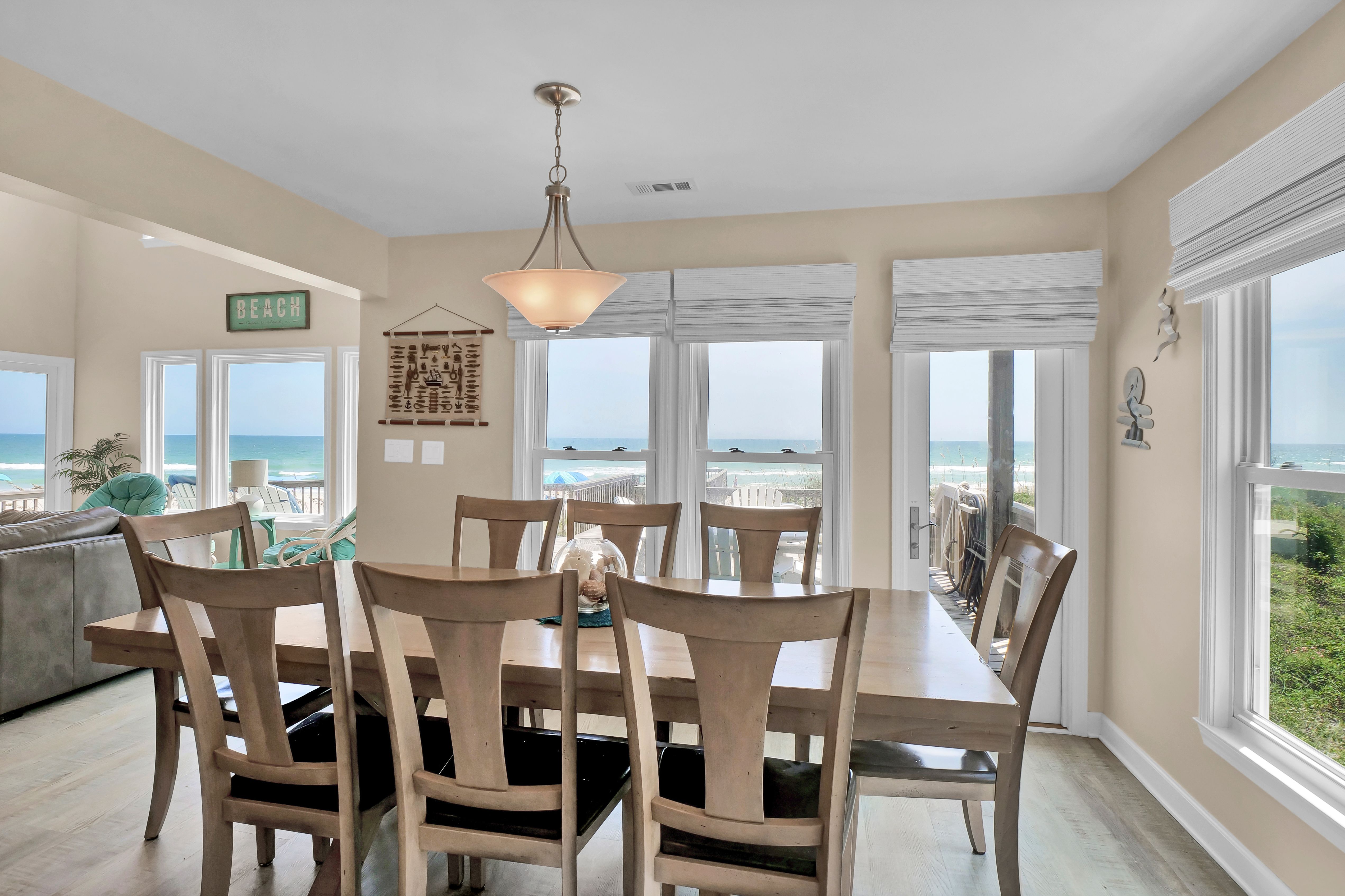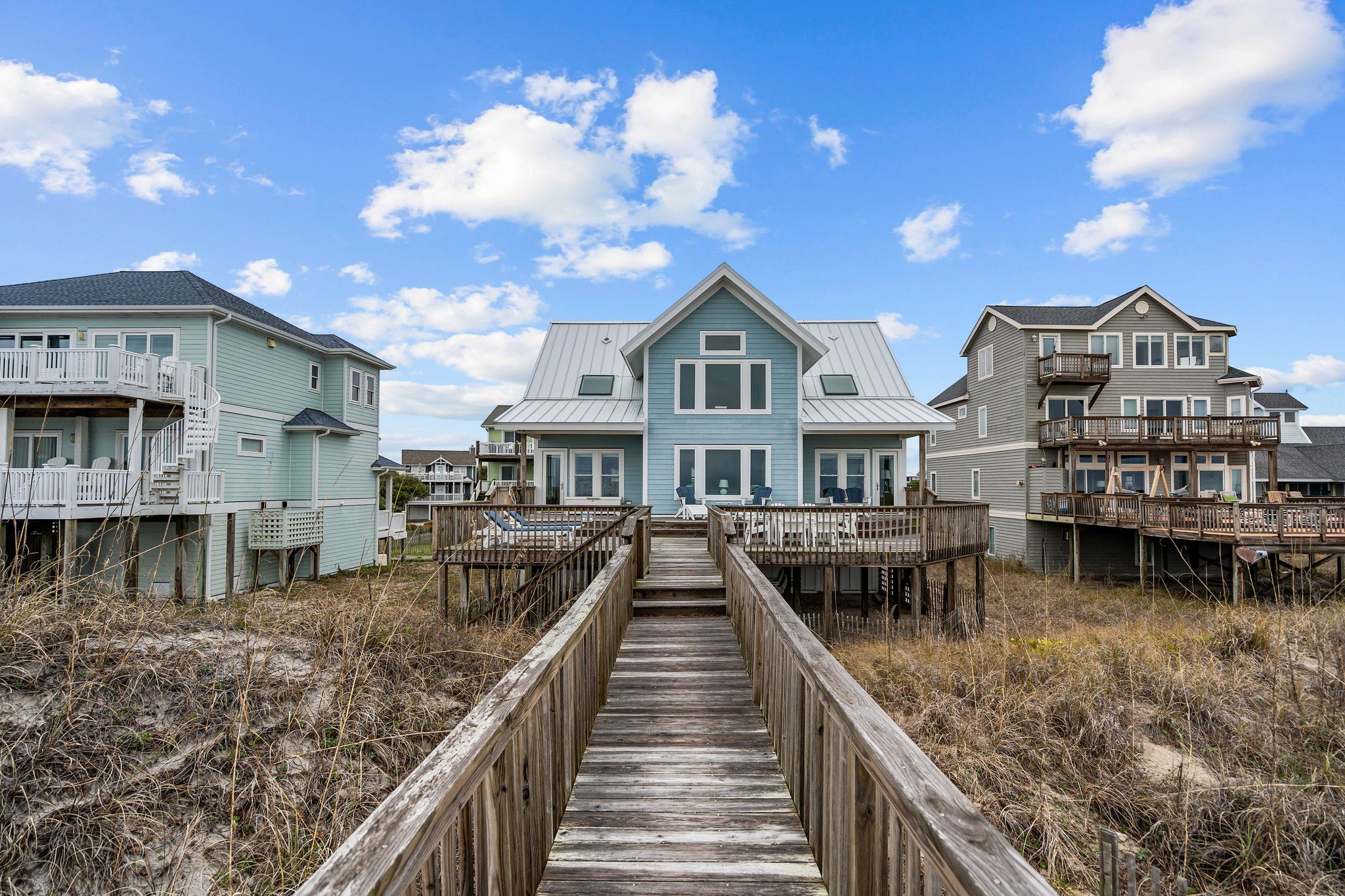 Ocean view deck seating and walkway to beach