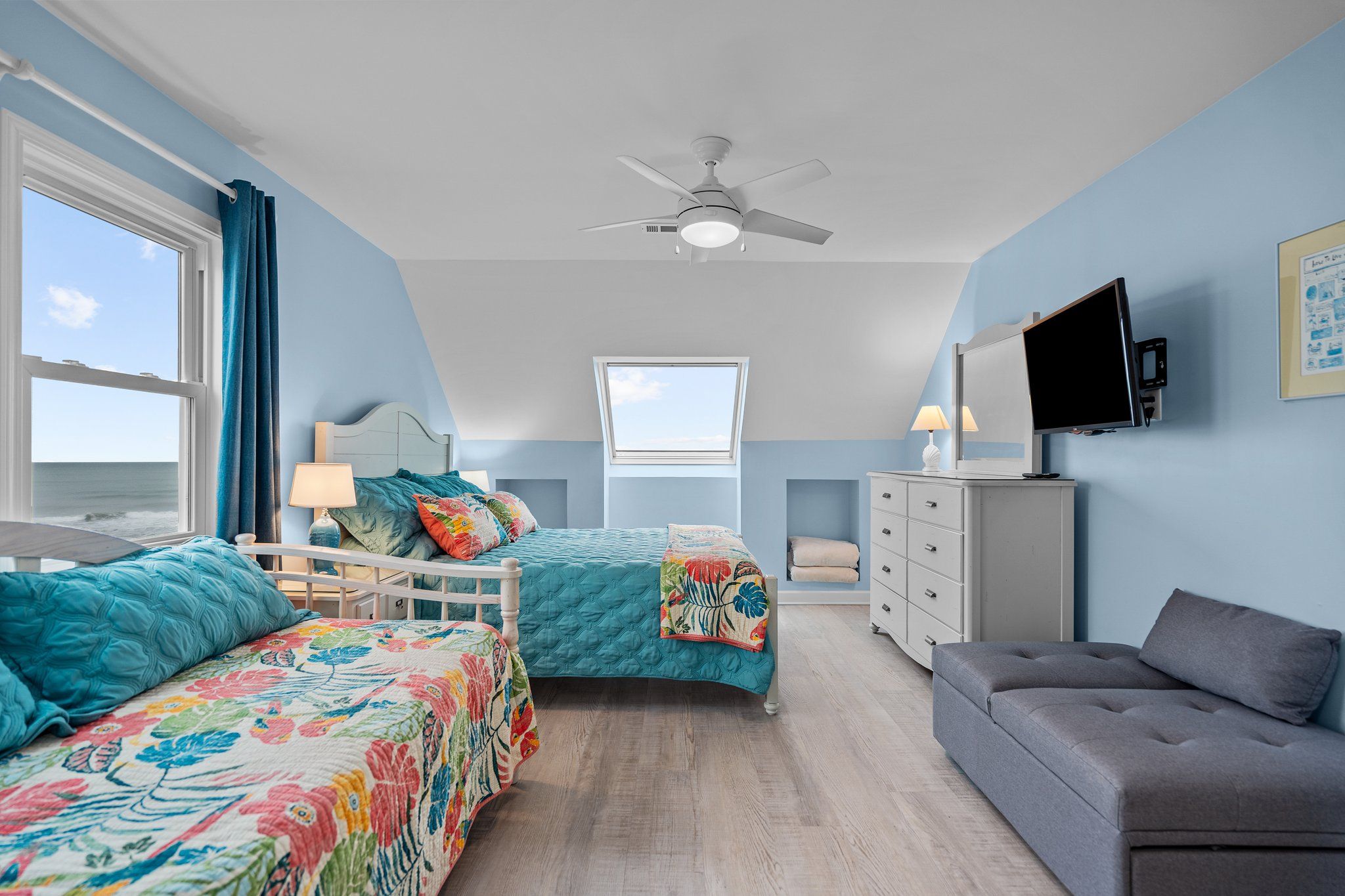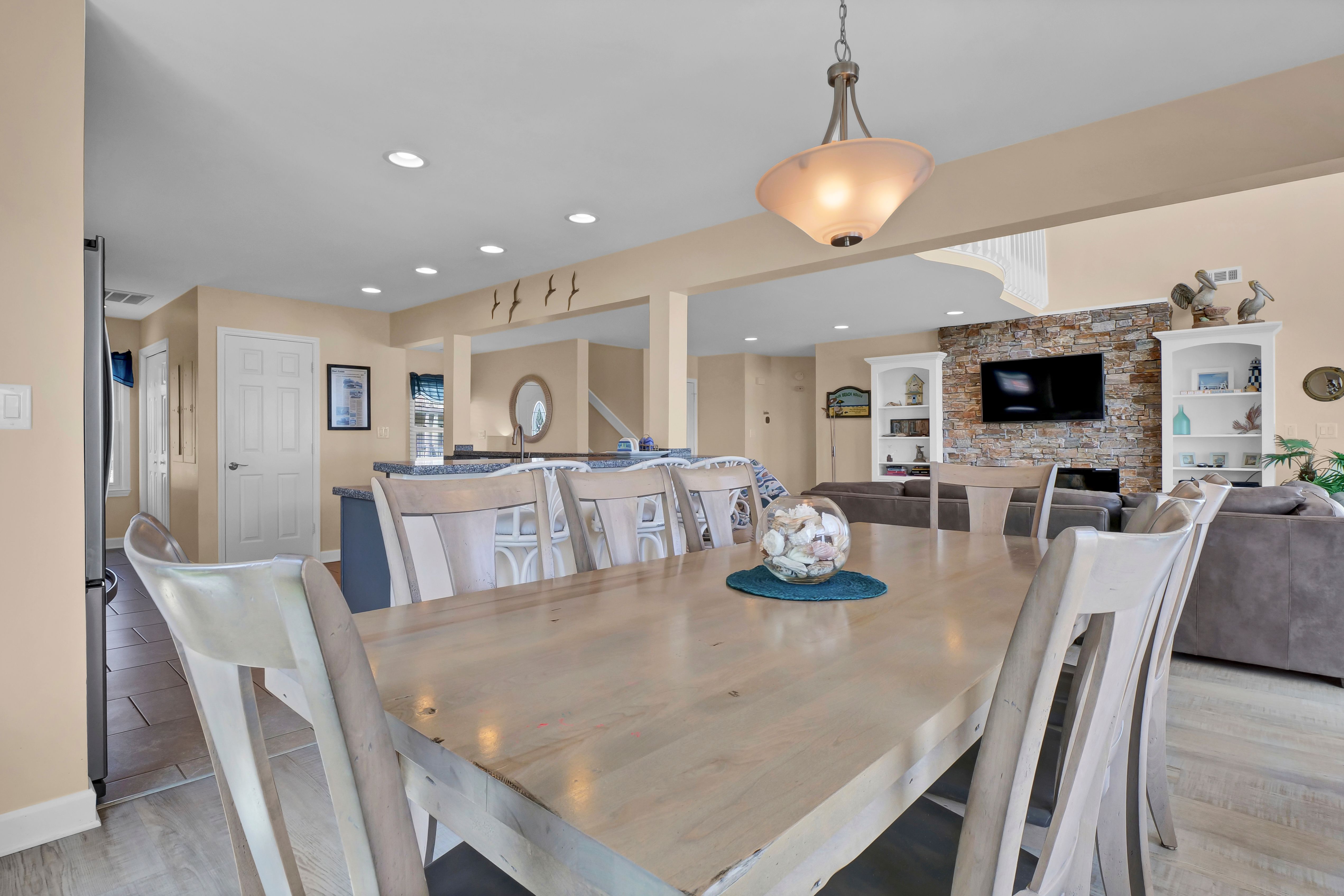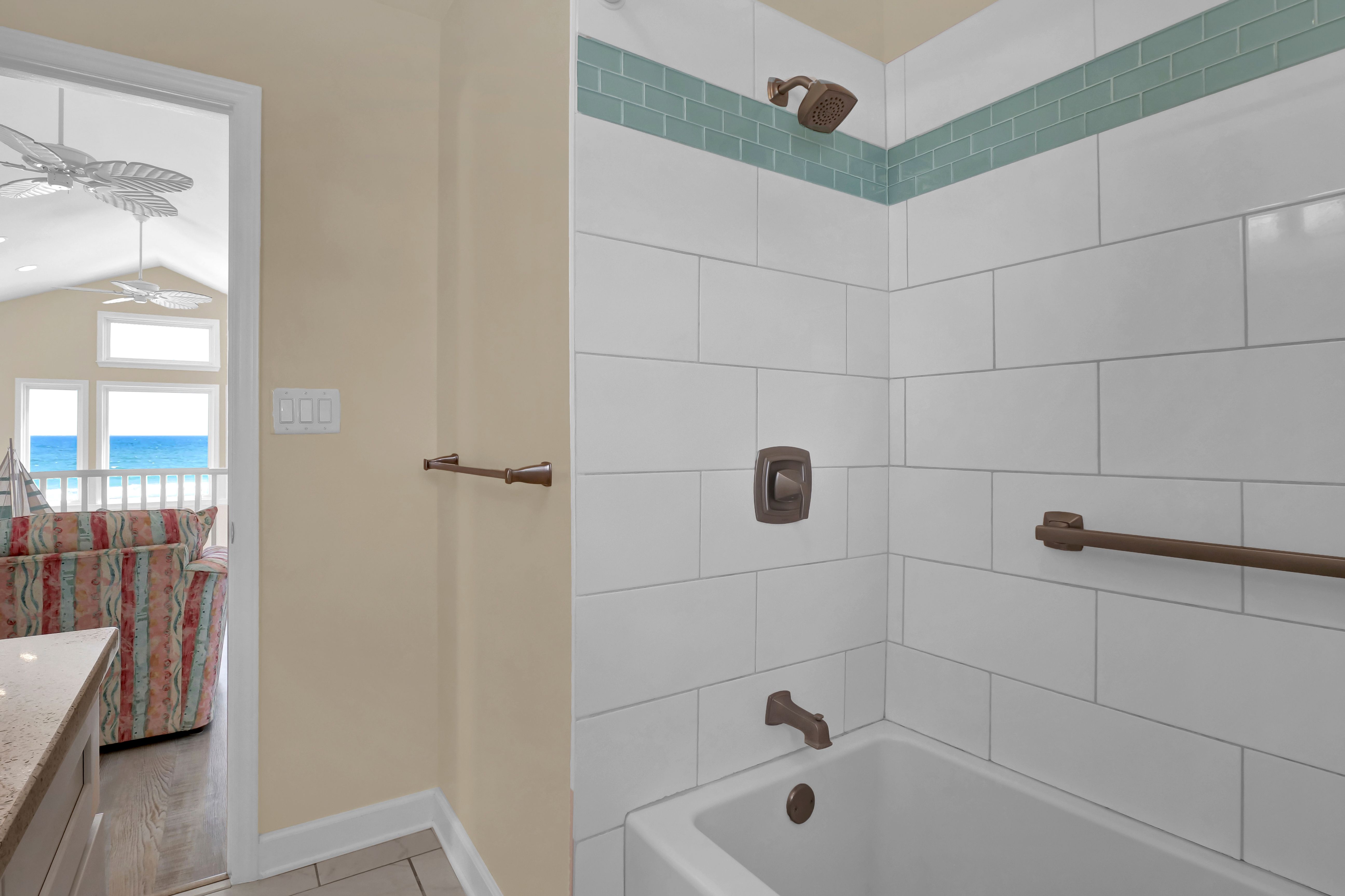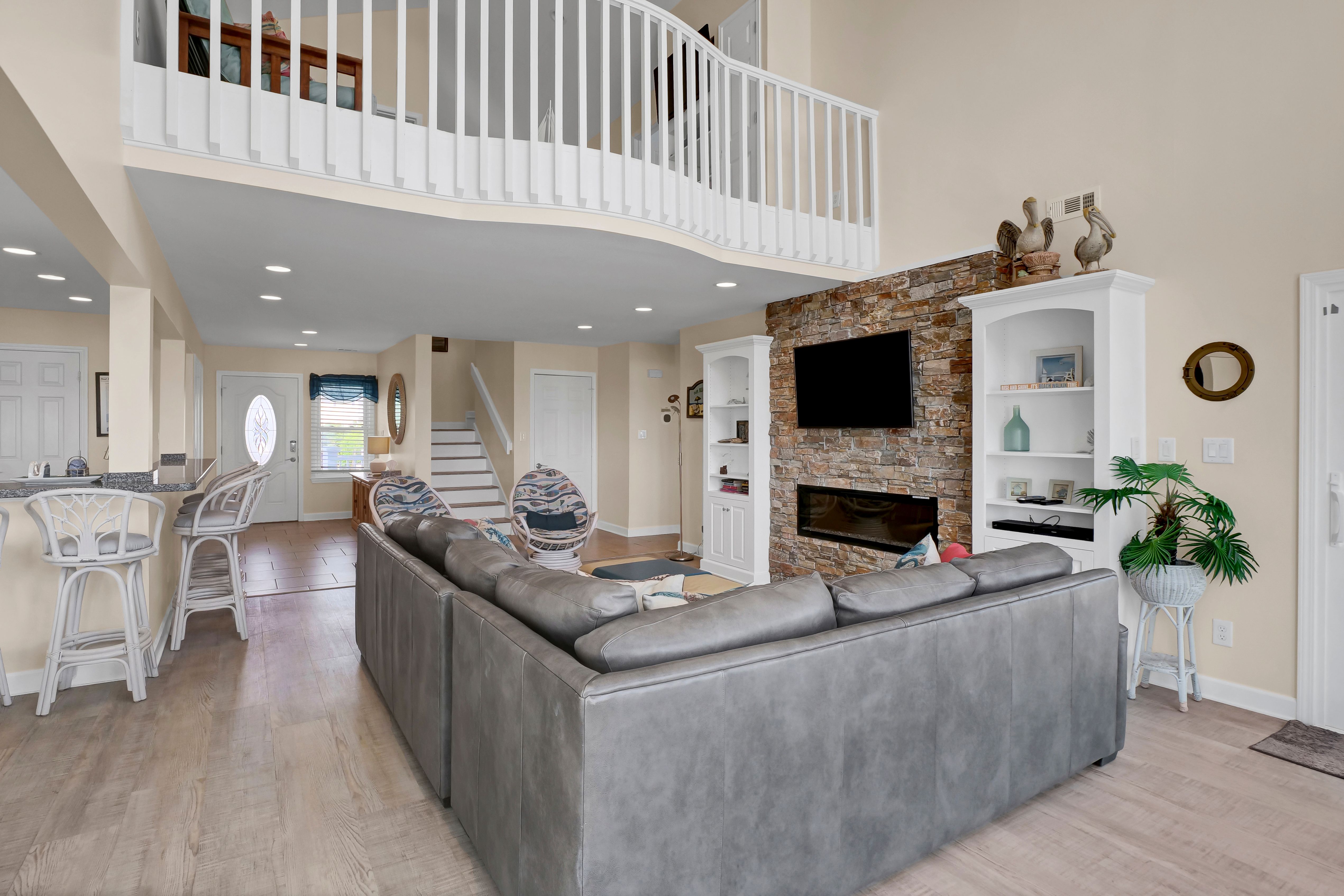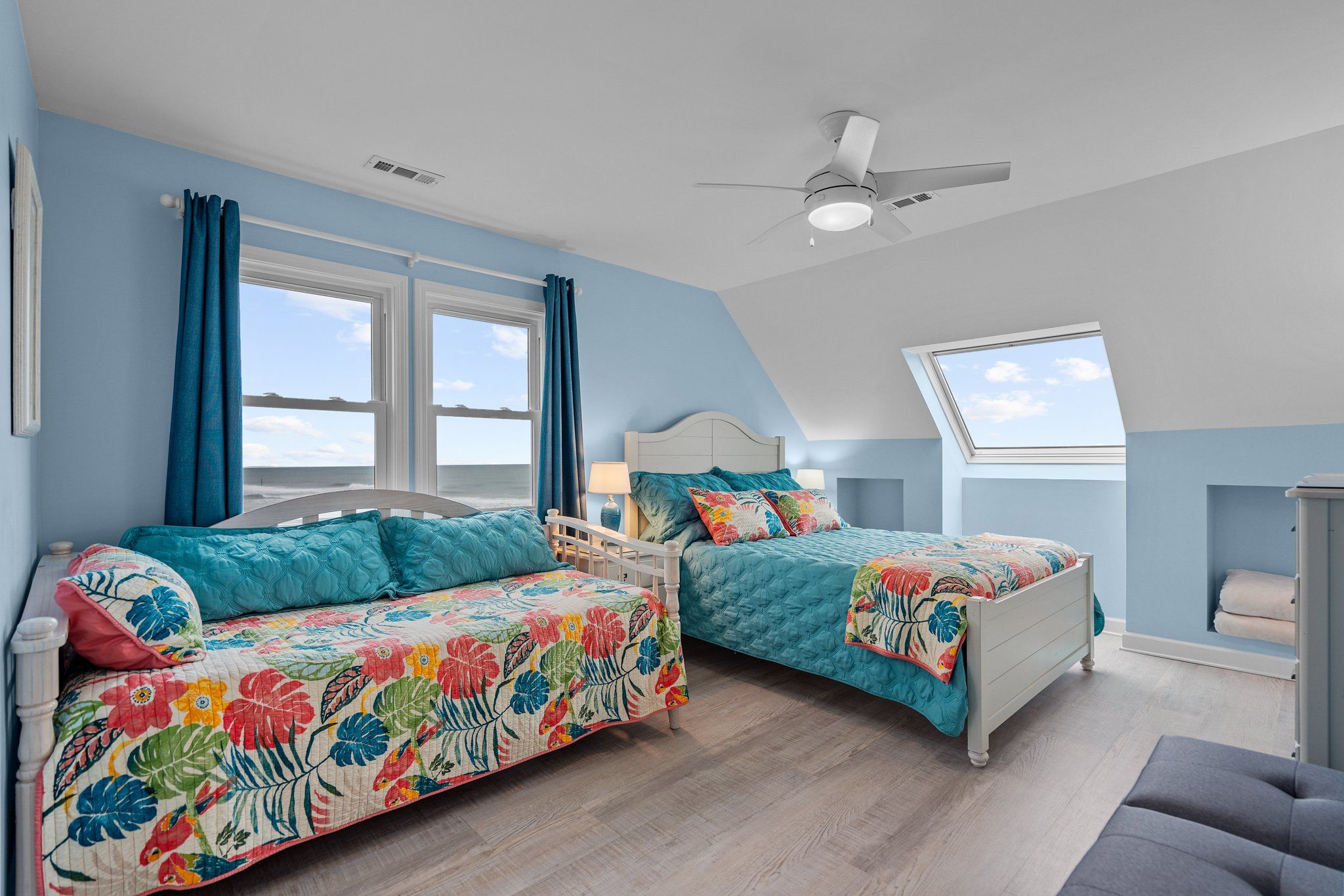 Ocean view deck seating and walkway to beach