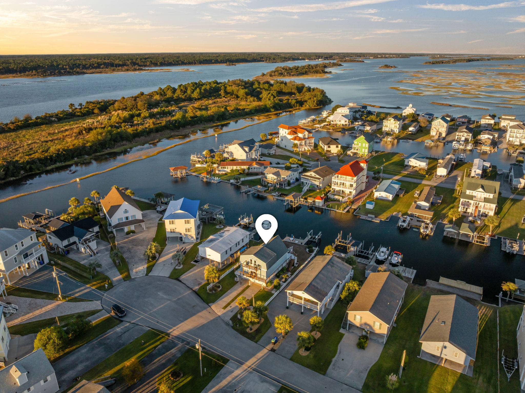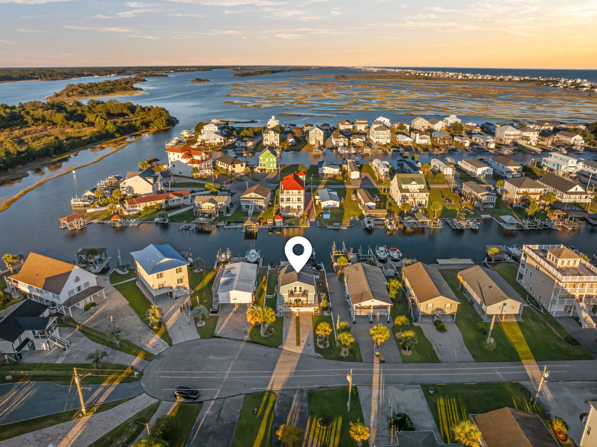 Welcome to your dream getaway on Topsail Island! Yacht Rock #206, a Landmark Vacation Rentals home, is a modern and unique 3-bedroom, 2.5-bath canal-front retreat in Surf City that perfectly blends coastal charm, comfort, and convenience. Nestled right on the canals, this one-of-a-kind beach cottage offers water views from every room, direct access to the Intracoastal Waterway, a private dock, and calm waters ideal for kayaking, paddleboarding, or simply relaxing by the water. With easy access to the ICW and just minutes to the closest beach access by golf cart (golf cart available to rent with this house), this vacation home truly offers the best of both worlds. This home can comfortably accommodate 6 adults and 2 young children.